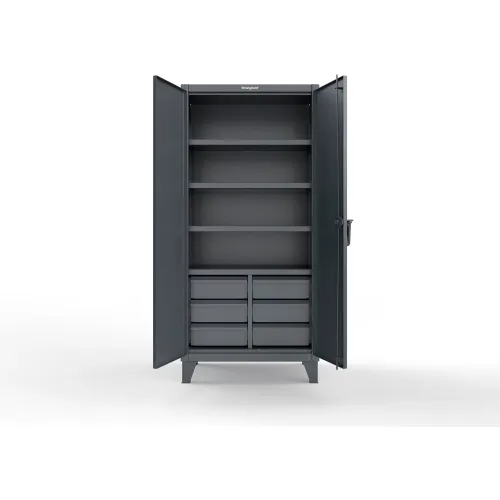 Strong Hold® Extreme Duty Cabinet w/6 Half-Width Drawers, 36"W x 24"D x 78"H, Dark Gray