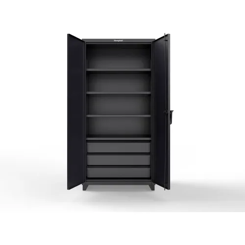 Strong Hold® Extreme Duty Cabinet with 3 Drawers, 4 Shelves, 36"W x 24"D x 75"H, Black