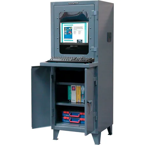 Strong Hold® Extreme Duty Computer Cabinet w/ 2 Shelves, 26"W x 24"D x 72"H, Dark Gray