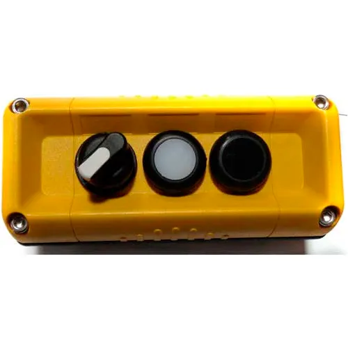 T.E.R., F71GY00020001011 VICTOR Wall Mnt. Control Station, Yellow, 3 Hole, 3 Pos. Selector+2 Funct.