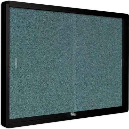 MasterVision Gray Fabric Bulletin Enclosed Cabinet, 36" x 48", Two Glass Sliding Doors