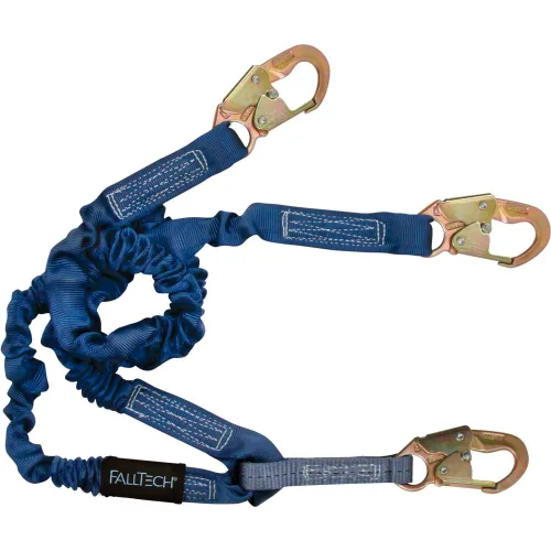 FallTech® 8240Y ElasTech 4-1/2' to 6' Shock Absorbing Lanyard, with 3 Snap Hooks