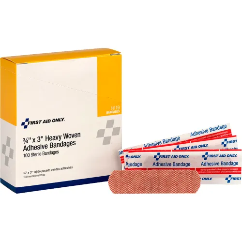 First Aid Only Heavy Woven Fabric Bandages, 3/4" x 3", 100/Box