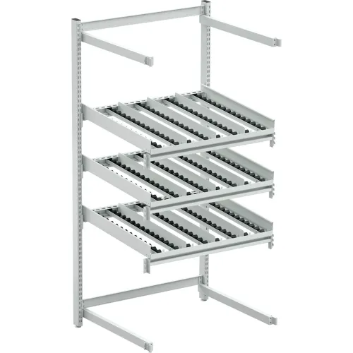 Treston FiFo Flow Rack M36, Rear Extension ESD, 36-27/37"W x 28-47/50"D x 73-3/13"H, 3 Levels - Gray
