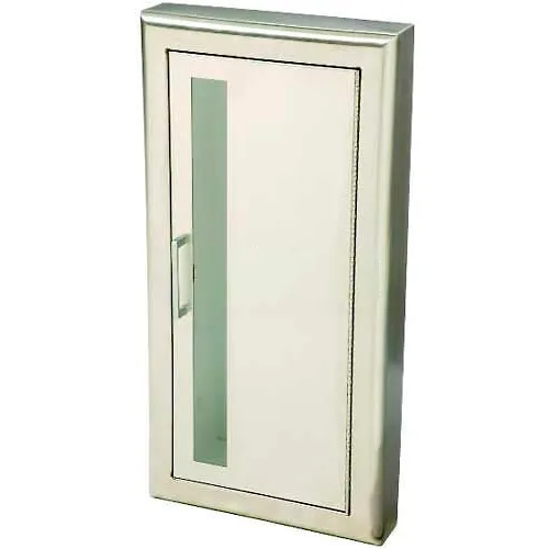 JL Industries SS Fire Extinguisher Cabinet, Vertical Acrylic Window, Semi-Recessed, 3" Rolled Trim
