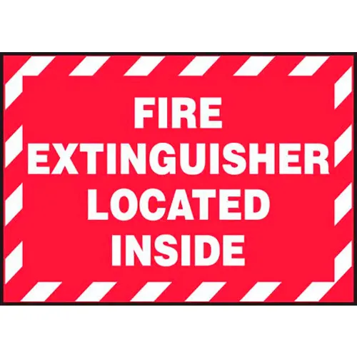 AccuformNMC Fire Extinguisher Located Inside Sign, Adhesive Vinyl, 3-1/2" x 5", White/Red, Pack of 5