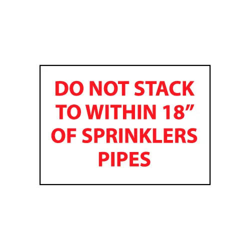 Fire Safety Sign - Do Not Stack To Within 18" Of Sprinklers Pipes - Vinyl