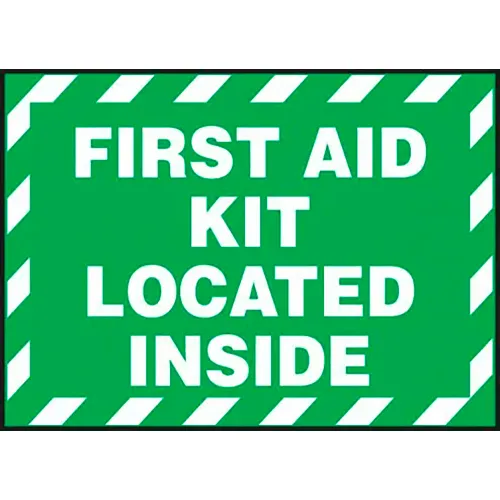 AccuformNMC First Aid Kit Located Inside Sign, Adhesive Vinyl, 3-1/2" x 5", White/Green, Pack of 5