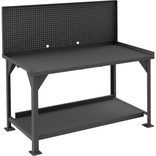 Durham Mfg. Stationary Workbench W/ Pegboard Panel & Steel Square Edge, 60"W x 30"D, Gray