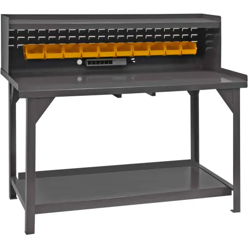 Durham Mfg. Stationary Workbench W/ Louver Riser Panel, Bins & Steel Square Edge, 72"W x 30"D, Gray