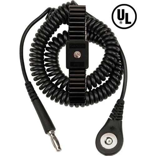 Desco Fixed Size Metal Wrist Strap Kit, 6' Coil Cord, Small Wristband