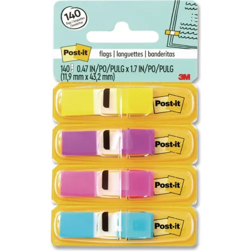 Post-it® Flags Small Page Flags in Dispensers, 0.5x1.75, Four Colors, 35/Color, 4 Dispensers/PK