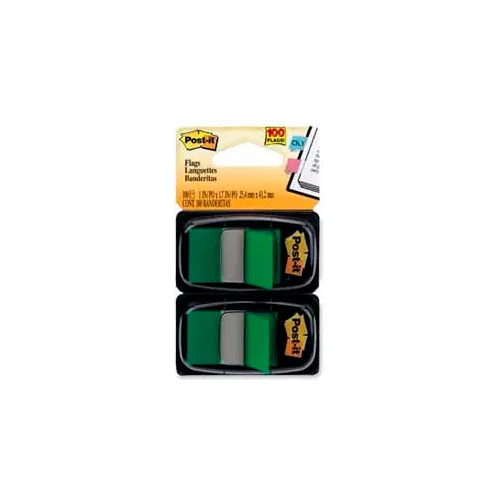 Post-it® Flags, 1" Wide, Green, 50 Flags/Dispenser, 2 Dispensers/Pack