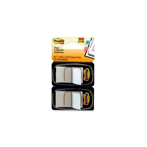 Post-it® Flags, 1" Wide, White, 50 Flags/Dispenser, 2 Dispensers/Pack