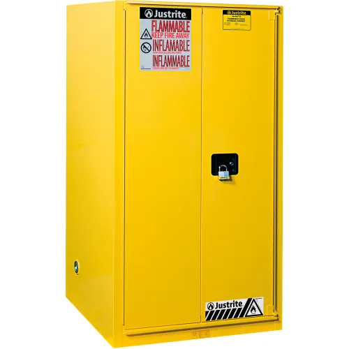 Justrite® Flammable Cabinet, Bi-Fold Self Close Single Door, 90 Gal. Cap., 43"W x 34"D x 65"H