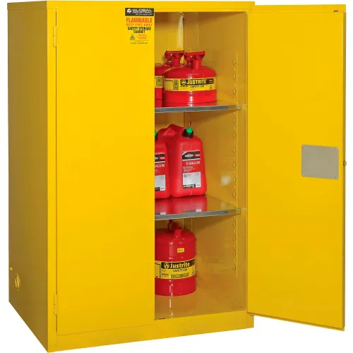 Global Industrial Flammable Cabinet, Manual Close Double Door, 90 Gallon, 43"W x 34"D x 65"H