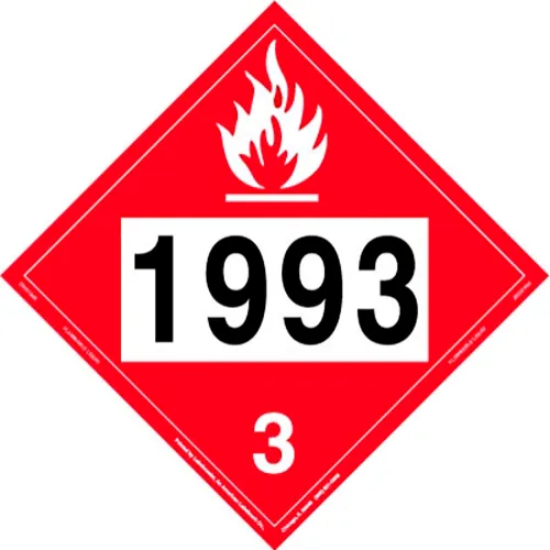 LabelMaster® Flammable Liquid Placard, UN 1993, 10-3/4"W x 10-3/4"H, Rigid Vinyl, Pack/25