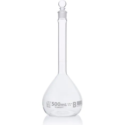 Flask, Volumetric , Globe Glass, Class B, To Contain (TC), ASTME288, 500mL, 6/Box