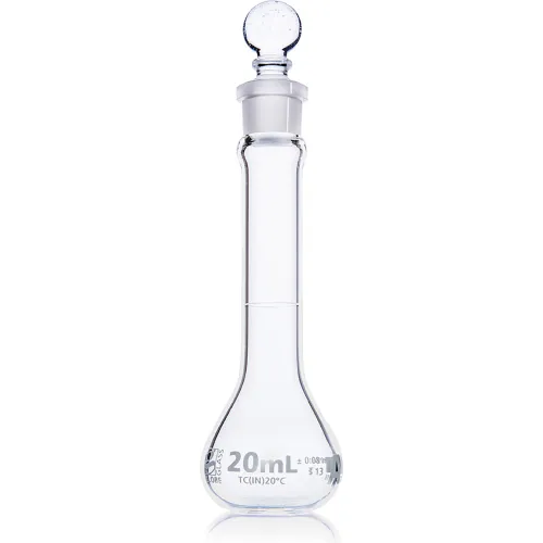 Flask, Volumetric, Wide Mouth, Globe Glass, Class A, To Contain (TC), ASTM E288, 20mL, 6/Box