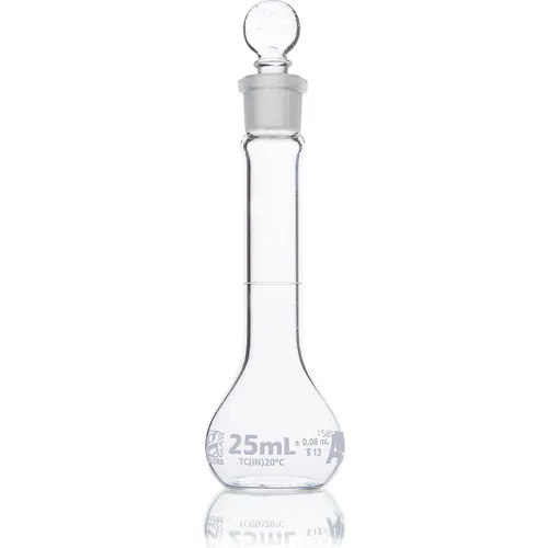 Flask, Volumetric, Wide Mouth, Globe Glass, Class A, To Contain (TC), ASTM E288, 25mL, 6/Box