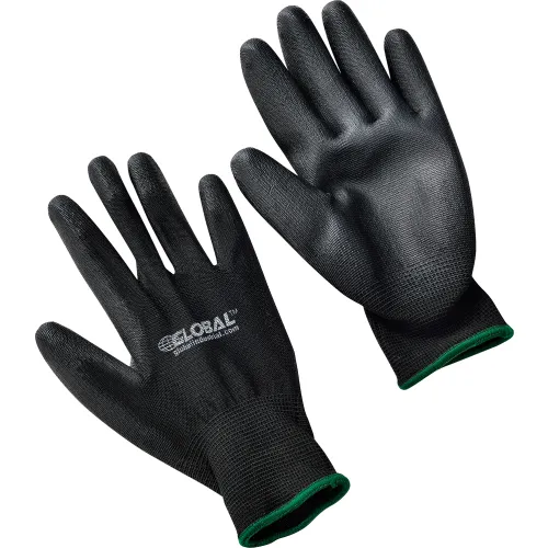 Global Industrial™ Flat Polyurethane Coated Gloves, Black/Black, Medium, 1 Pair - Pkg Qty 12