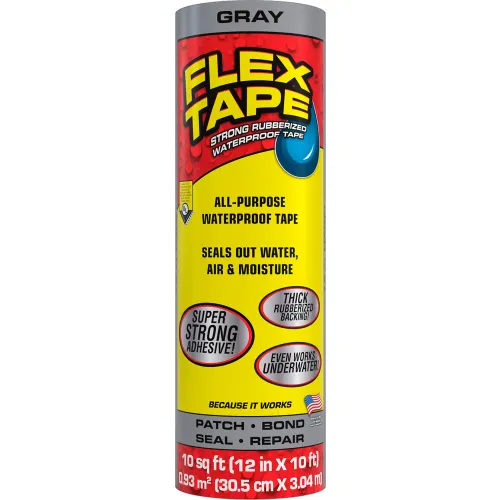 Flex Seal® Flex Tape® Strong Rubberized Waterproof Tape, 12" x 10', Gray, 4/Case - Pkg Qty 4