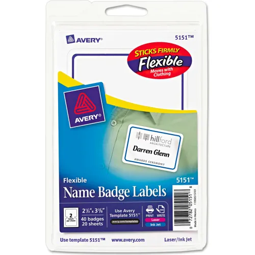 Avery® Flexible Self-Adhesive Laser/Inkjet Name Badge Labels, 2-1/3" x 3-3/8", BE, 40/PK