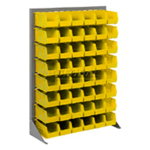 Global Industrial Louvered Bin Rack w/ 32(B), 8(E), 2(H) Yellow Bins, 36"W x 15"D x 50"H