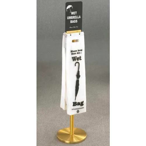 Floor Standing Wet Umbrella Bag Holder W/ Sign Mount, Satin Brass
