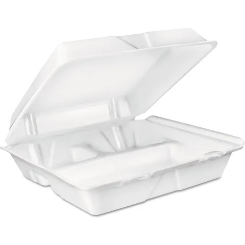 Dart® Foam Hinged Lid Container, 3 Compartments, 8 oz, 9x9.4x3, White, 100/Sleeve, 2 Sleeves/CT