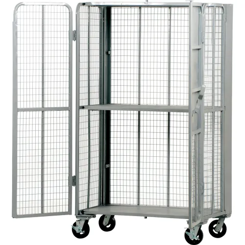 Vestil Folding Security Cart with 2 Shelves, 2000 lb. Cap., 45-1/8"L x 27-1/16"W x 77-3/16"H, Gray