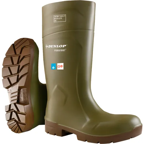 Dunlop FoodPro Purofort Multi Grip Safety Boots, Cleated Outsole, Steel Toe, Size 16, 15"H, Green