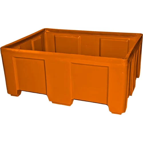 Forkliftable Plastic Bulk Shipping Container,No Lid,49-1/2"L x 37-1/2"W x 21-1/2"H,1200 lb Cap,Ornge