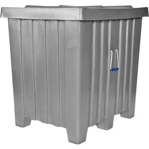 Forkliftable Plastic Bulk Shipping Container w/ Lid, 42"L x 34"W x 42"H, 800 lb. Capacity, Gray