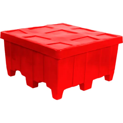 Forkliftable Plastic Bulk Shipping Container w/ Lid, 44"L x 44"W x 23"H, 700 lb. Capacity, Red