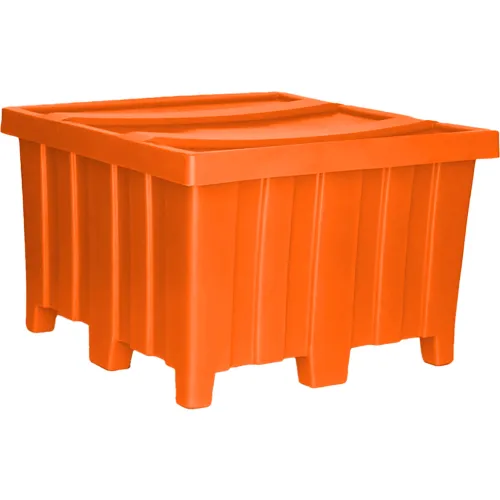 Forkliftable Plastic Bulk Shipping Container w/ Lid, 44"L x 44"W x 29-1/2"H, 1200 lb Cap, Orange