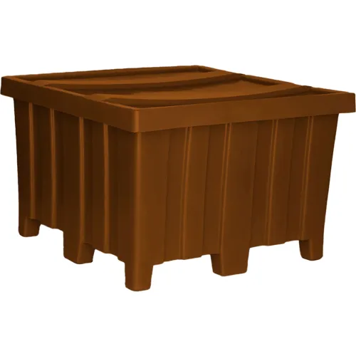 Forkliftable Plastic Bulk Shipping Container w/ Lid, 44"L x 44"W x 29-1/2"H, 1200 lb Capacity, Brown