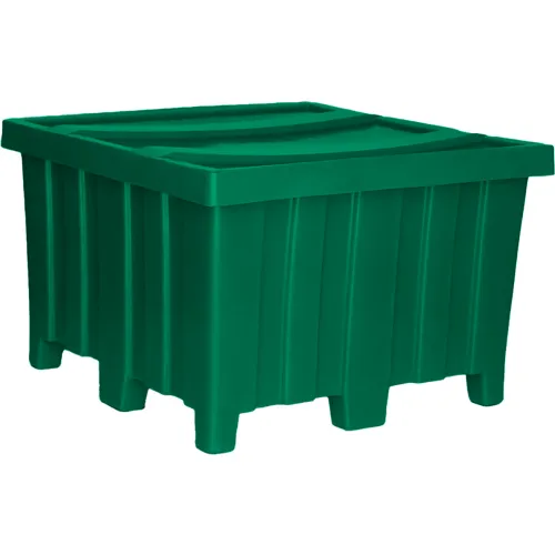 Forkliftable Plastic Bulk Shipping Container w/ Lid, 44"L x 44"W x 29-1/2"H, 1200 lb Capacity, Green