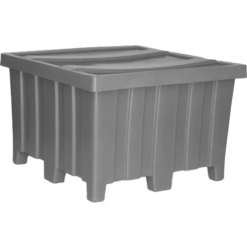Forkliftable Plastic Bulk Shipping Container w/ Lid, 44"L x 44"W x 29-1/2"H, 1200 lb Capacity, Gray