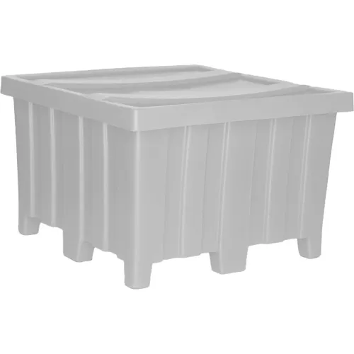 Forkliftable Plastic Bulk Shipping Container w/ Lid, 44"L x 44"W x 29-1/2"H, 1200 lb Capacity, White
