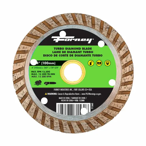 Forney® Diamond Cut-Off Blade, Turbo, 4" Dia. x 7/8" Center Hole Dia.
