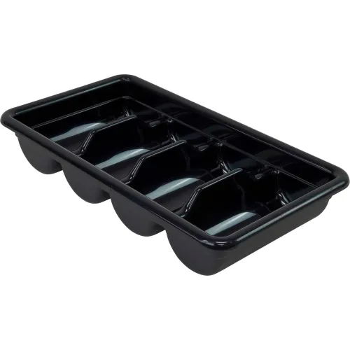 Quantum® Four Compartment Cutlery Box, 20-1/5"L x 11-3/8"W x 3-3/4"H, Black, Polypropylene - Pkg Qty 12