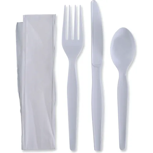 Boardwalk® Four-Piece Cutlery Kit, Fork/Knife/Napkin/Teaspoon, Heavyweight, White, 250/case