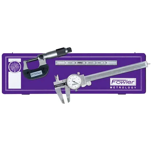 Fowler 52-095-007-0 3-Piece Dial Caliper, Micrometer & Steel Rule Toolmakers Universal Measuring Set