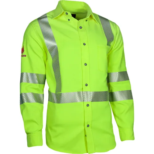 DRIFIRE® FR Hi-Vis Work Shirt, Type R, Class 3, XL, Fluorescent Yellow, SHRTV3C3XLLRG