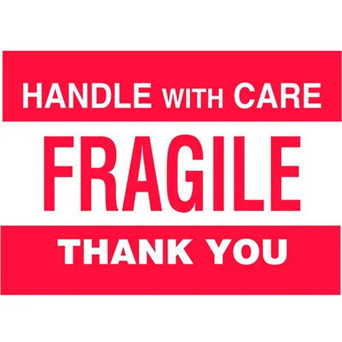 Paper Labels w/ "Fragile" Print, 5"L x 3"W, Red & White, Roll of 500