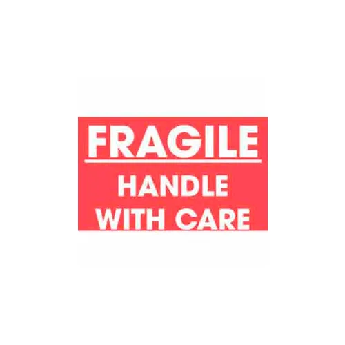 Paper Labels w/ "Fragile Handle w/ Care" Print, 3"L x 2"W, Red & White, Roll of 500
