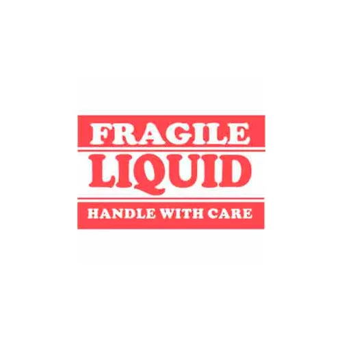 "Fragile Liquid Handle w/ Care" Labels, 3"L x 2"W, Red/White, Roll of 500