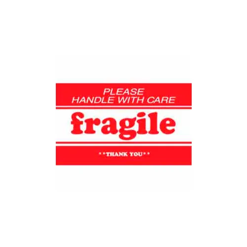Paper Labels w/ "Fragile Please Handle w/ Care Thank You" Print, 5"L x 3"W, Red/White, Roll of 500
