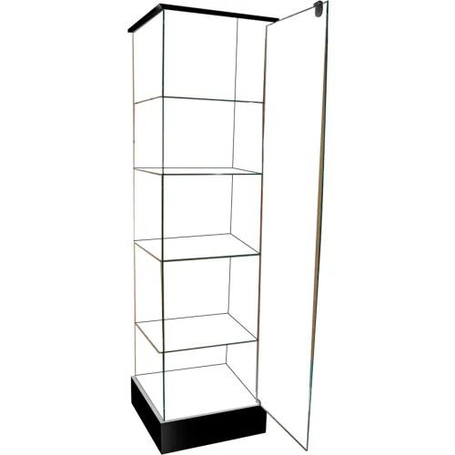 Frameless Glass Showcase, Full Vision, 20"W x 20"D x 72"H, 4 Shelves